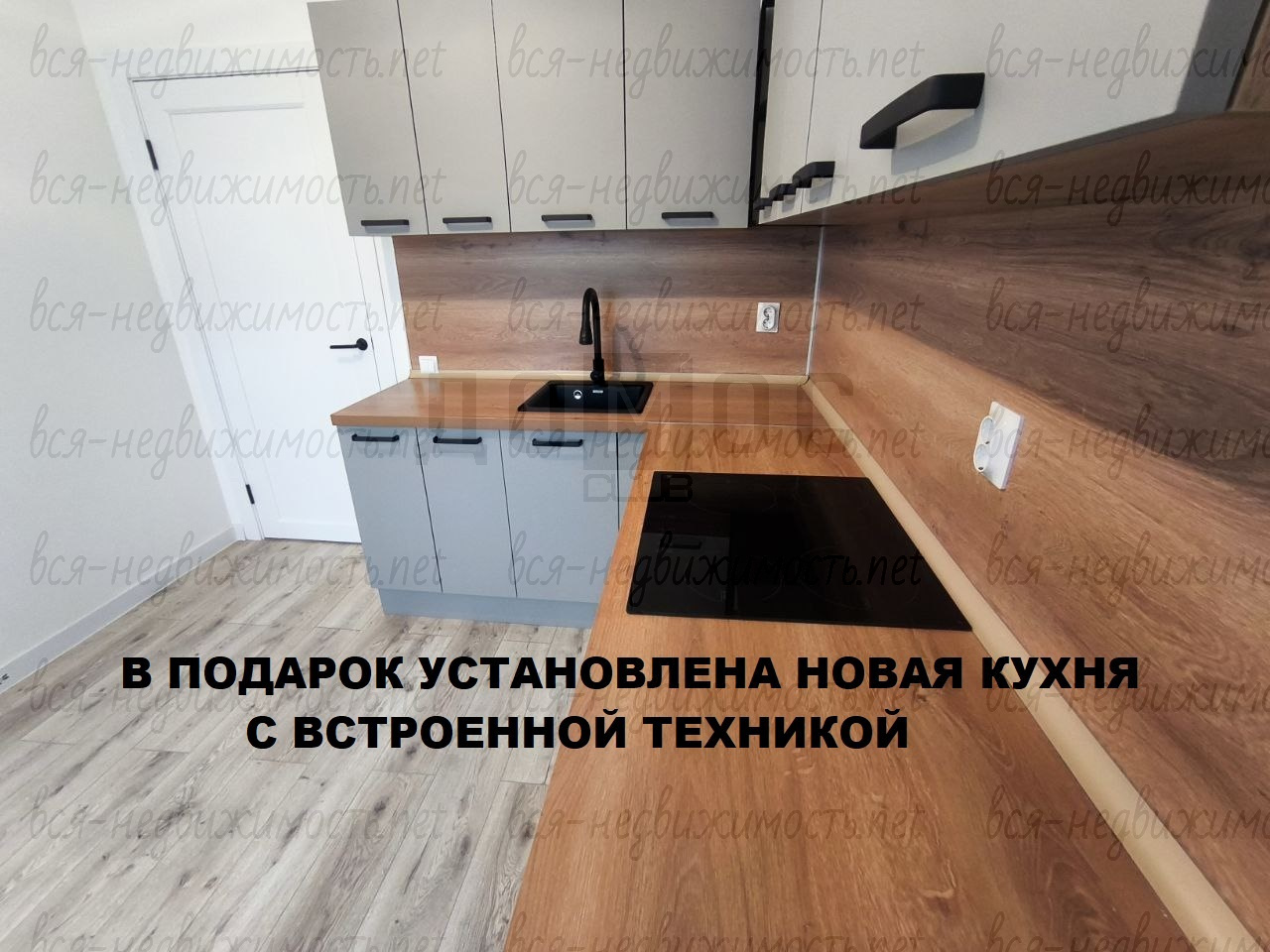 В ПОДАРОК установлен новый кухонный гарнитур с встроенной техникой