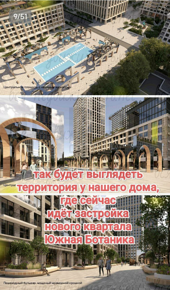 Рядом застраивается новый современный микрорайон "Южная Ботаника", объединяющий нескольких застройщиков одной концепцией развития территории, где будет фитнесс центр с бассейном, скверы, центральный бульвар, аллеи, дендропарк, фонтаны, амфитеатр и т.п.