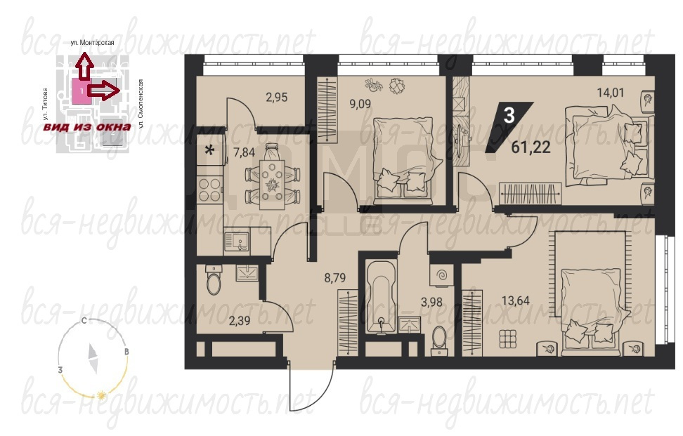 Все три комнаты изолированы, в коридоре ниша под шкаф-купе, теплая лоджия - можно убрать перегородку и расширить кухню. Видовой 14 этаж - окна на две стороны света Восток и Север. Есть свой паркинг (в рекламе нет, пока не продаем) можем сдать в аренду.