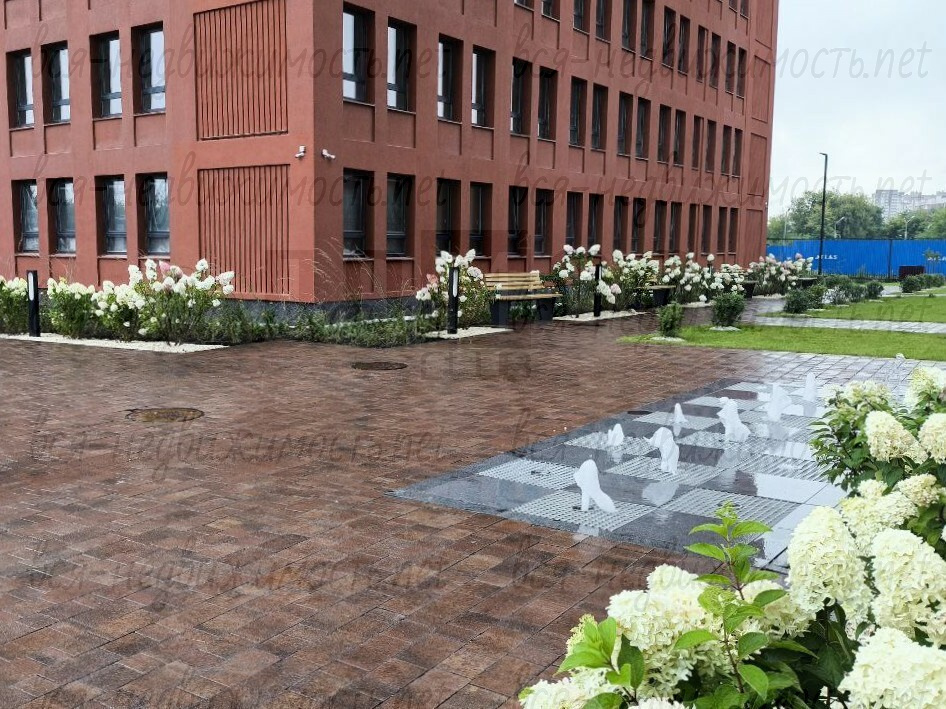 Закрытый двор, охрана/консьерж, разнообразные детские и спортивные площадки, беседки, фонтаны, много зелени. Красивые холлы с зонами ожидания, диванами, барной стойкой, водопадом, туалетом, колясочной, постоматами, Wi-Fi и пр.