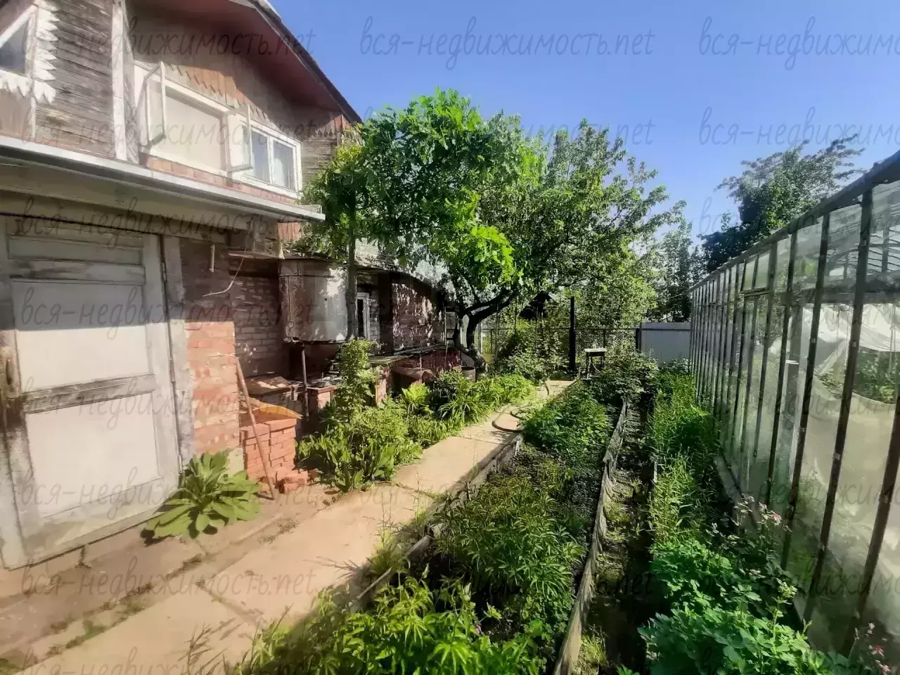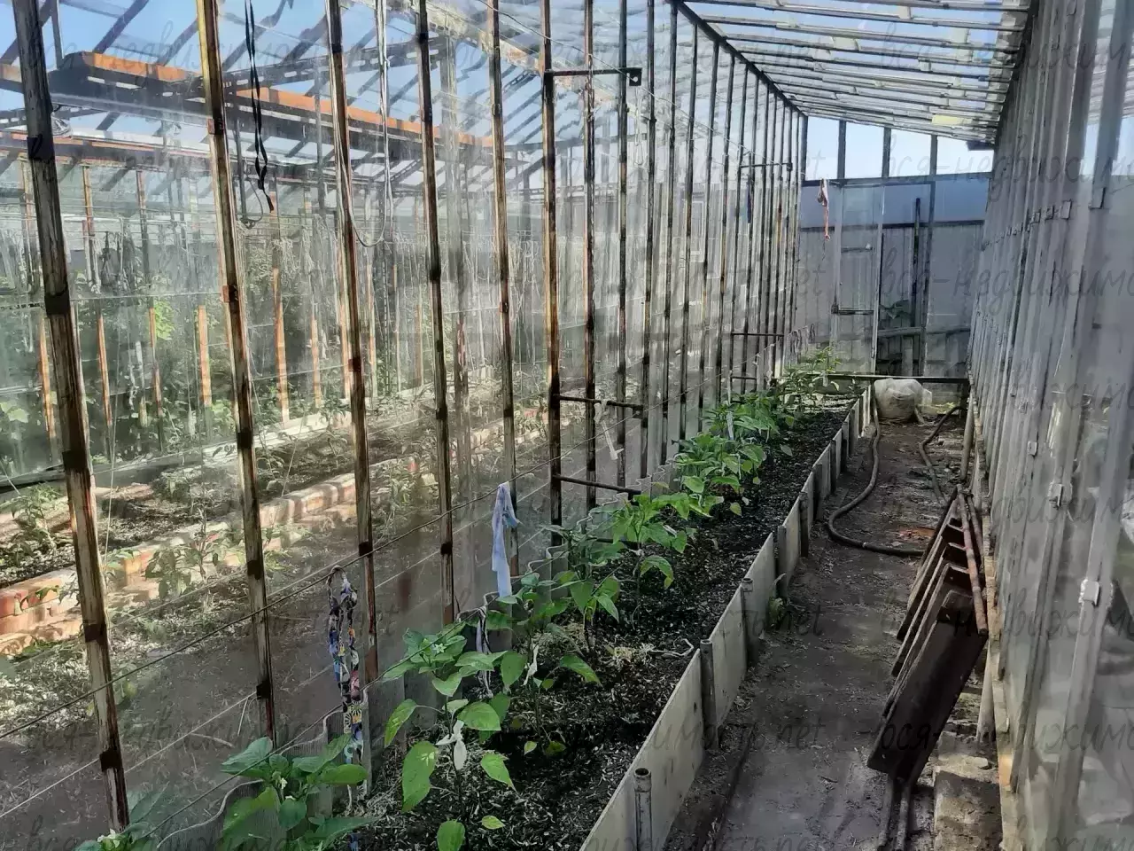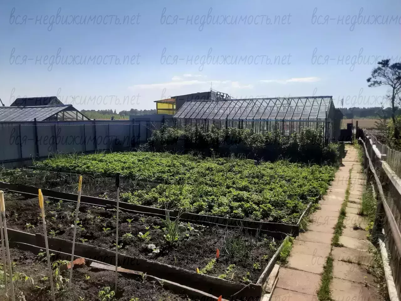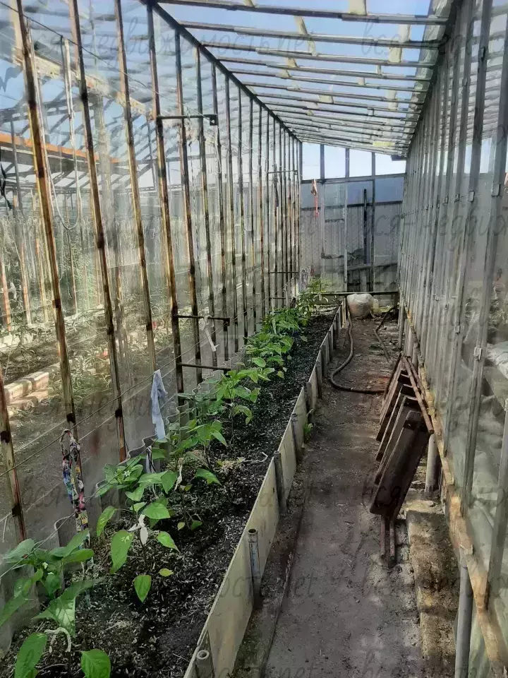 - Участок: удобный заезд для автомобиля, территория полностью освоена и ухожена. На фундаменте установлены теплицы — стабильный урожай и ранние посадки. Есть застеклённая беседка для вечерних посиделок в любую погоду.