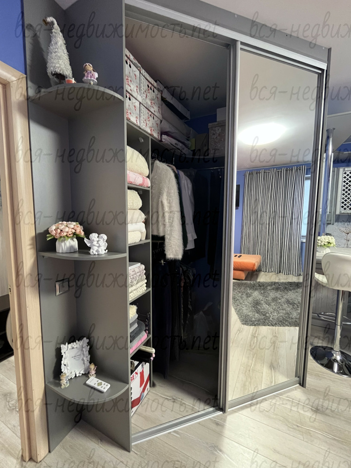 изолированная комната, пространство использовано по максимуму, просторная зона для кухни, зона гардероба, большое спальное место при этом чувствуется простор и уют.