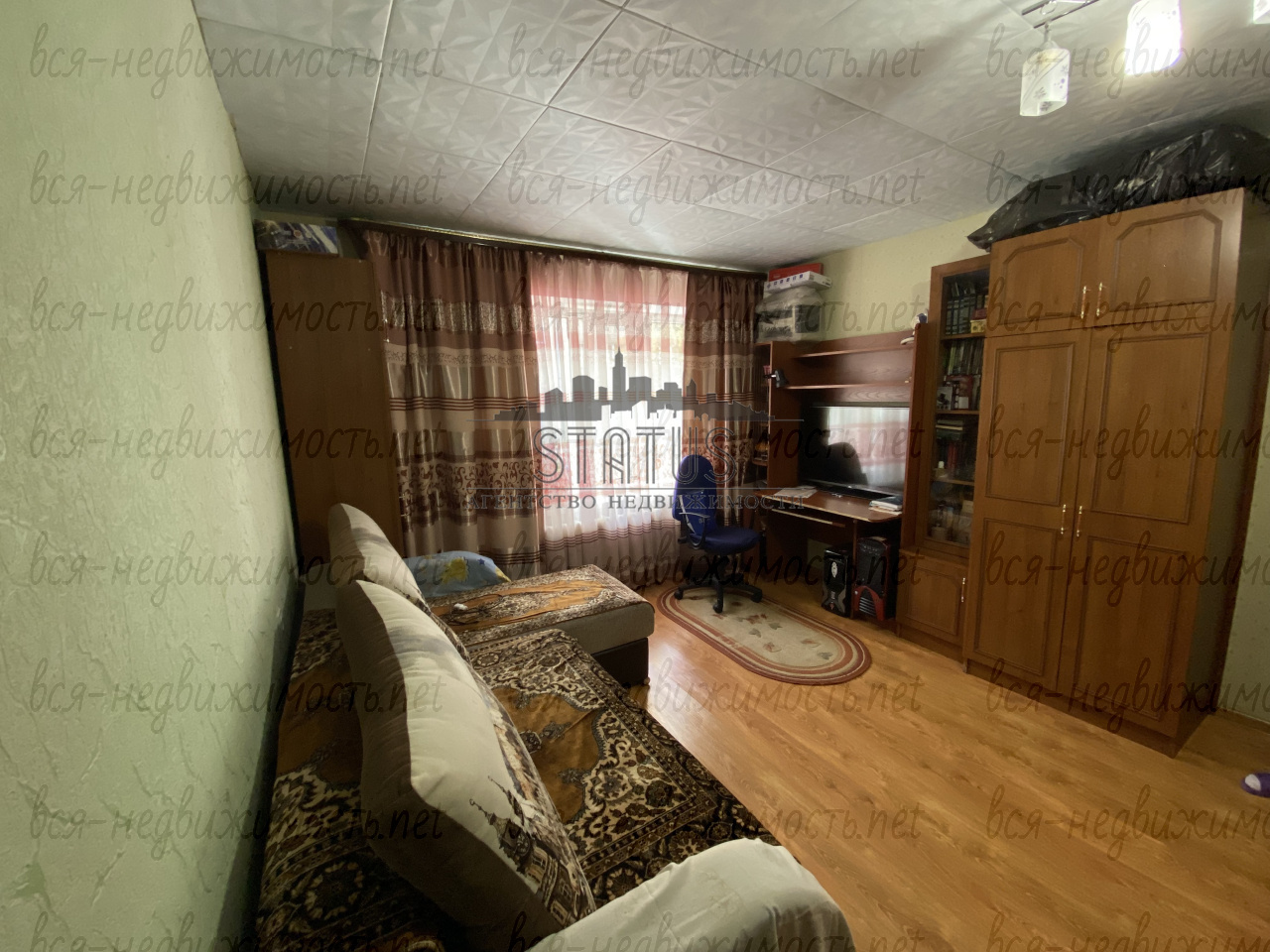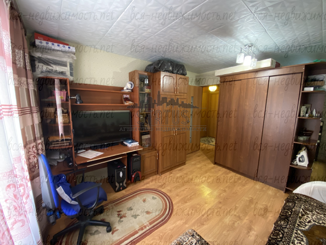 В квартире 1 комната,кухня,совмещенный санузел в плитке,кладовка,вместительный коридор.