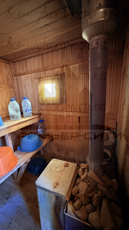 Участок: 6 соток с свежей землёй. Есть банька с парной, теплица для овощей, дровник под навесом.