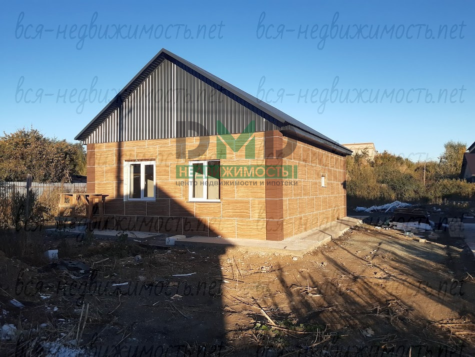 Дом построен из пеноблока, обшит термопанелями (теплее, чем кирпич), газ и вода - центральные, канализация - септик, по всему дому - тёплые полы от котла, двухконтурный котел, раскинута медная проводка, стены - предчистовая, по уровню, пол выровнен и "выведен в ноль", вокруг дома залит бетонный отмосток. В плане - небольшое крыльцо и забор.