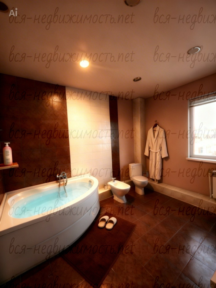 - санузел с ванной 11.2 кв.м. полностью в плитке, две раковины, биде.