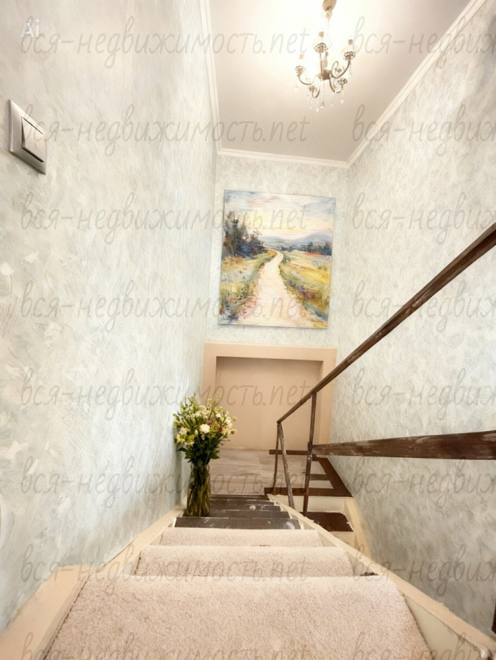 Лестница ведущая на второй этаж деревянная, под лестницей есть большое место для хранения.