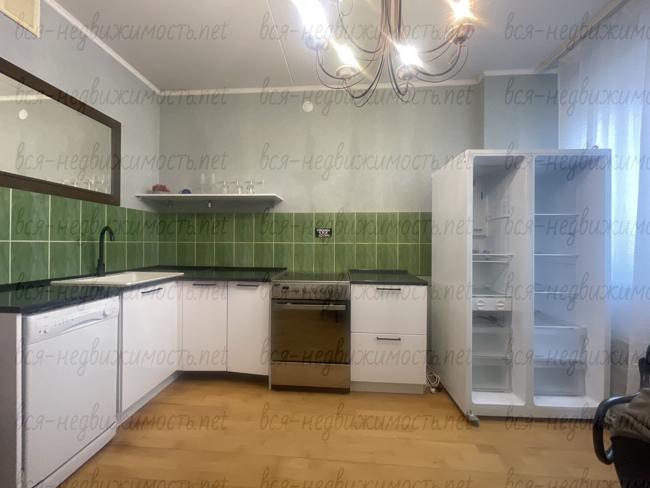 - А главное — всё остаётся: мебель, кухонный гарнитур с посудомойкой, духовкой и варочной панелью (холодильник не входит — он на фото просто как часть интерьера).