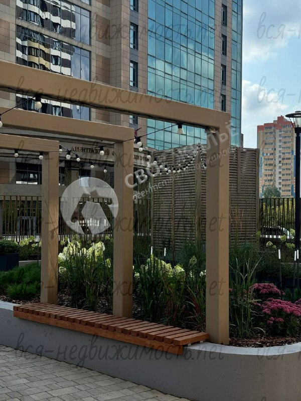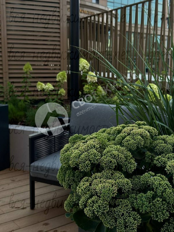 * двор-сад на стилобате с красивым озеленением и пространством для отдыха