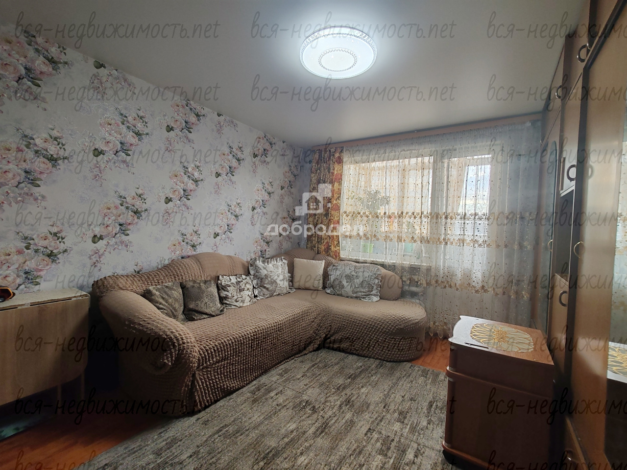 2. Просторная гостиная зона, где свободно размещаются диван и шкаф.