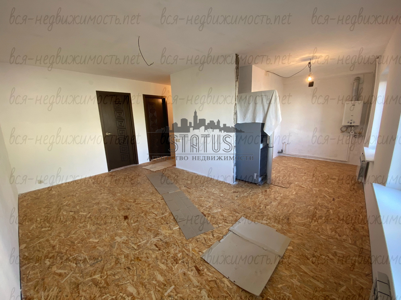 Стены выровнены, отштукатурены. Полы выровнены, уложено OSB. Все подготовлено для поклейки обоев.