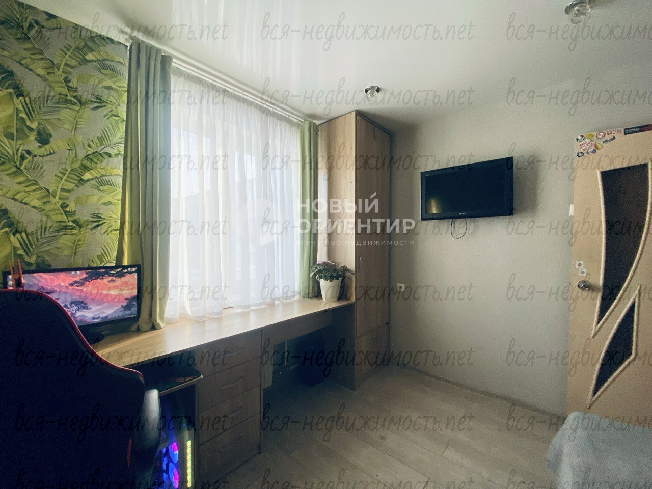 Остается кухонный гарнитур, шкаф и письменный стол в детской.