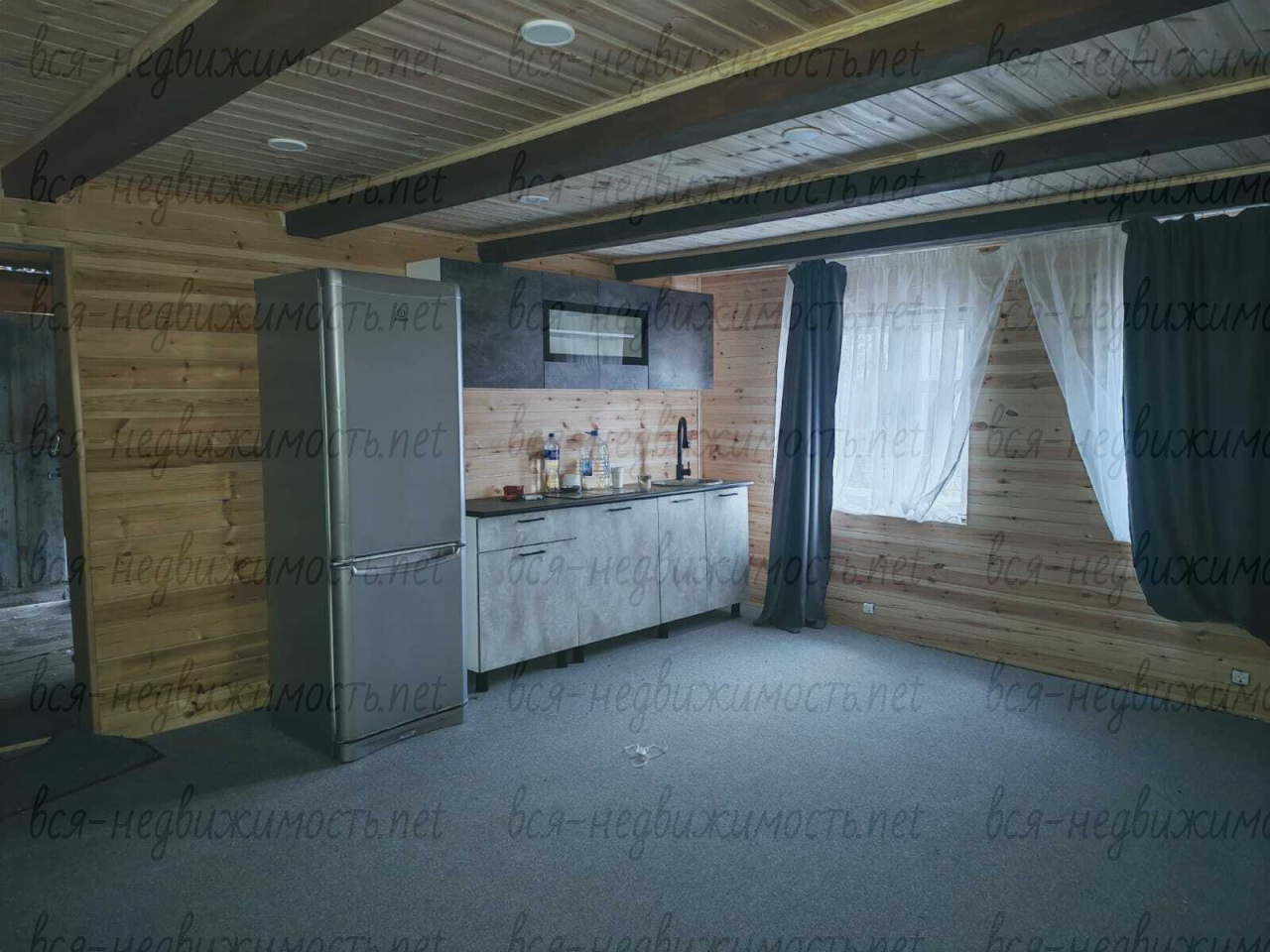 Дом из бруса. На первом этаже жилая комната и кухня, на мансардном этаже помещение свободной планировки.1 этаж утеплен.