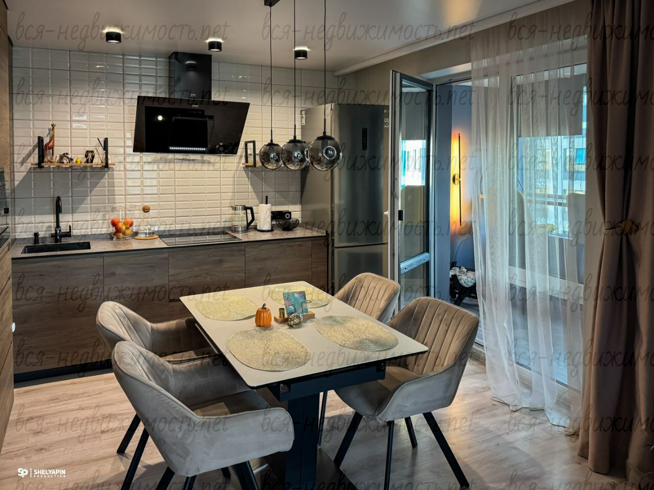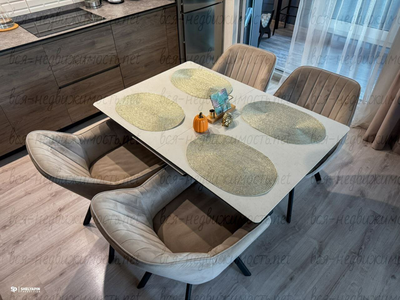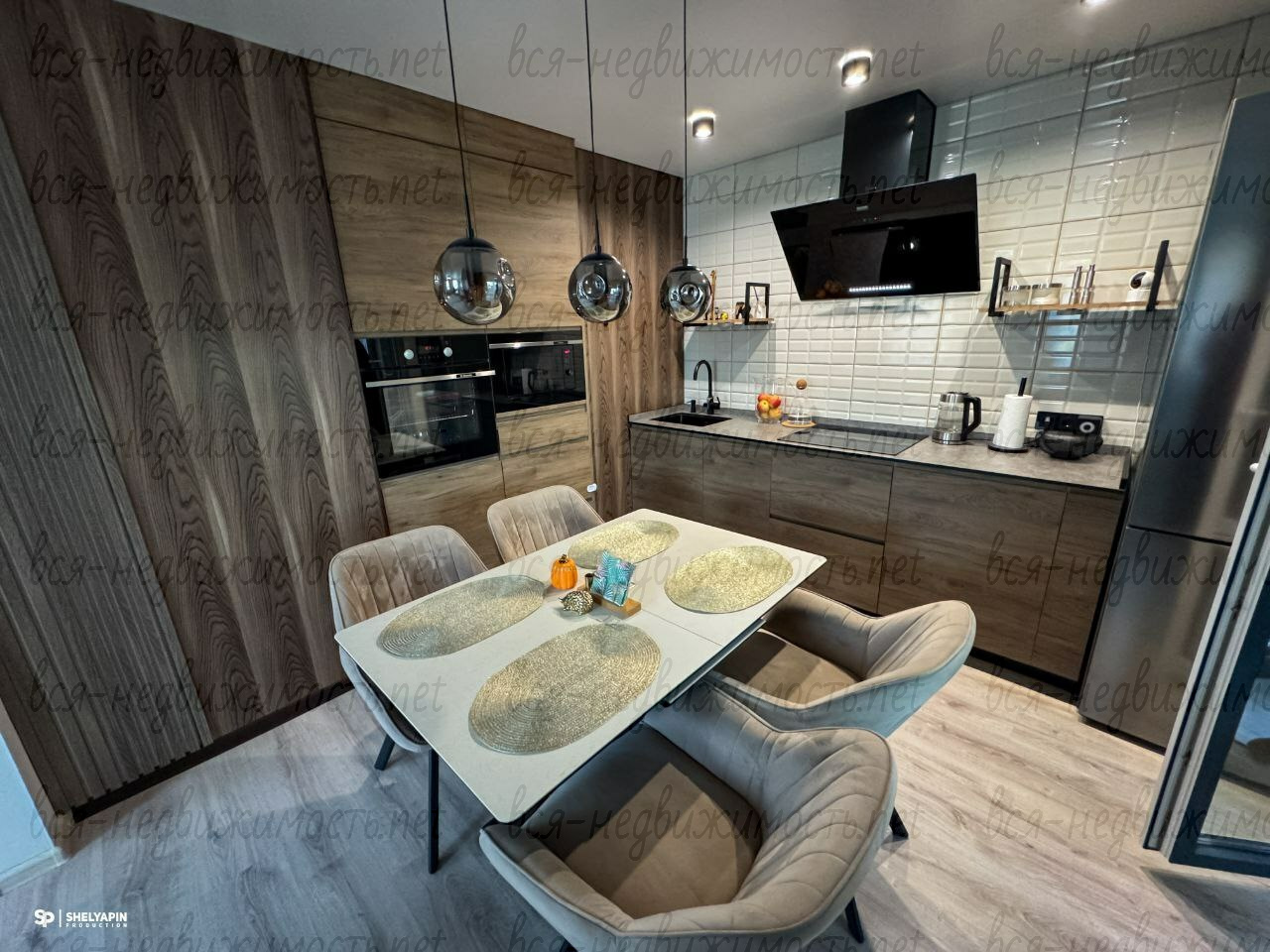 ✔ кухня премиум-класса с встроенной техникой (Встраиваемая посудомоечная машина, микроволновая печь и духовой шкаф фирмы Hansa. Вытяжка KRONA steel, кухонный кран с системой очистки воды и дозатор фирмы GAPPO Холодильник фирмы LG. Кухонный стол с каменной столешницей и креслами из велюра.