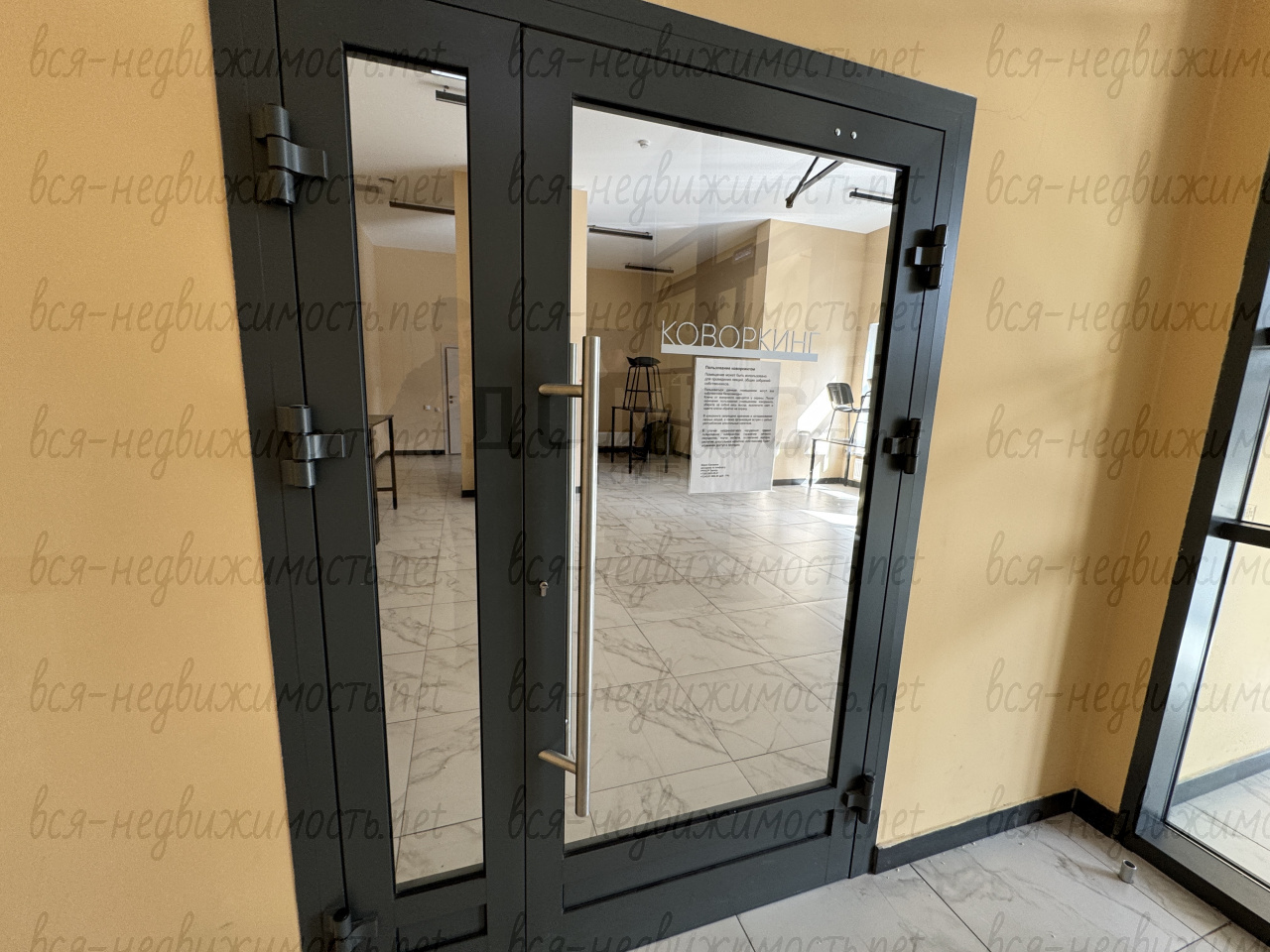 Дизайнерский холл с ресепшен-сервисом, зонами ожидания, столиками и картинами. На первом этаже — две мойки для лап, велоколясочная, гостевой санузел. В доме также есть коворкинг для работы и деловых встреч.