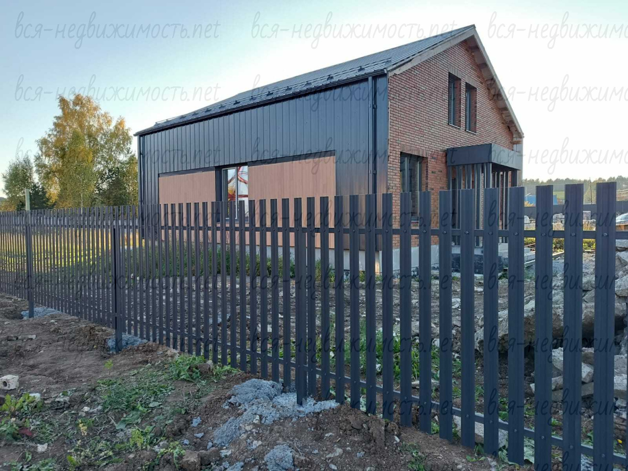Фасад: Вентилируемый. Комбинированные материалы (кирпич, планкен лиственницы класса Экстра, профнастил с имитацией фальца)