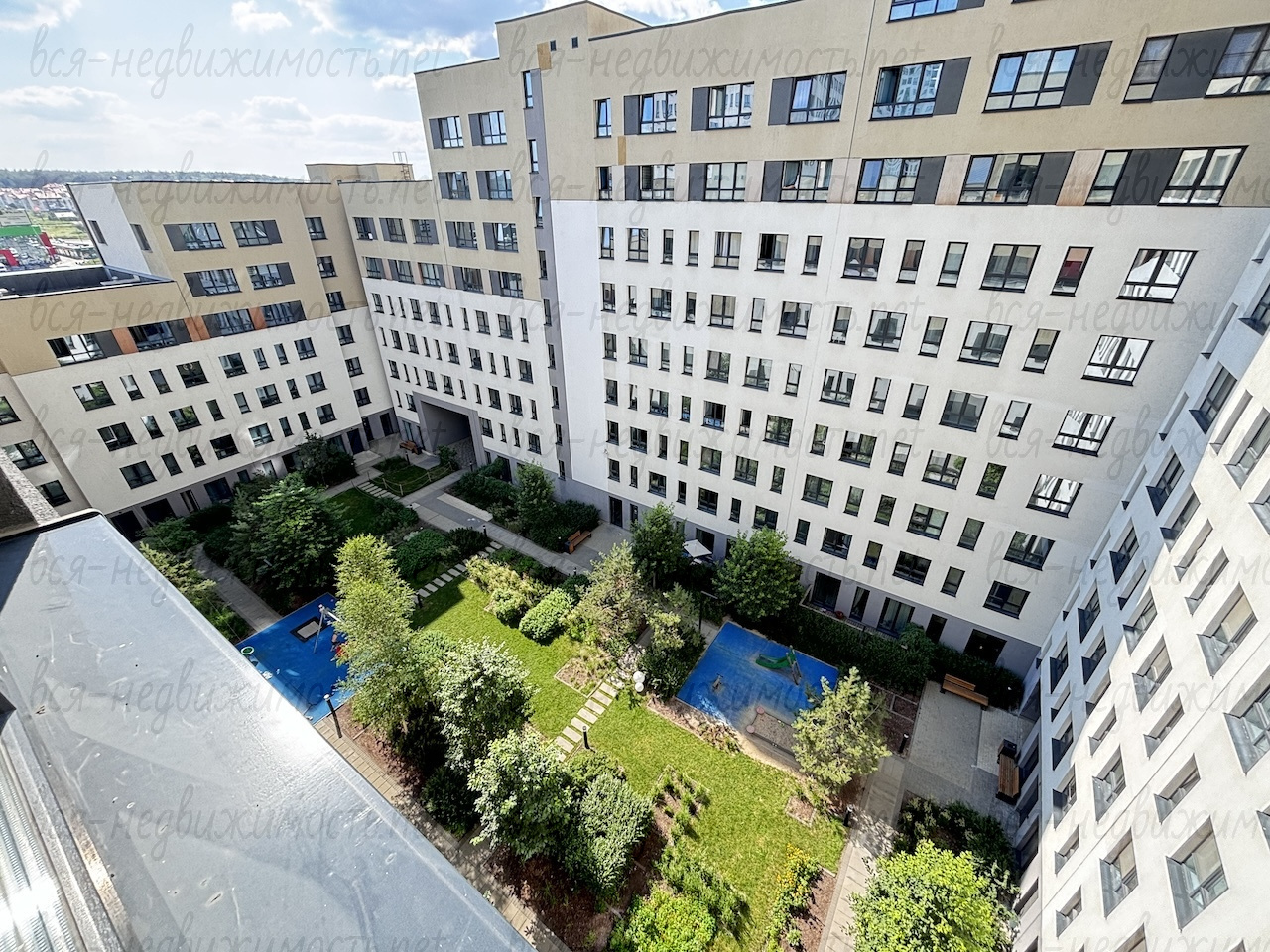 - закрытый двор с дизайнерским озеленением и обустроенной детской площадкой.