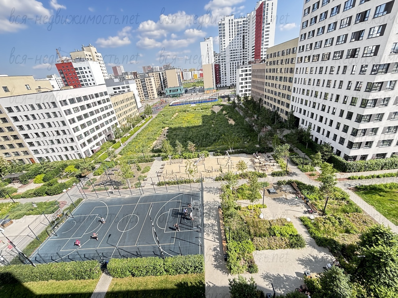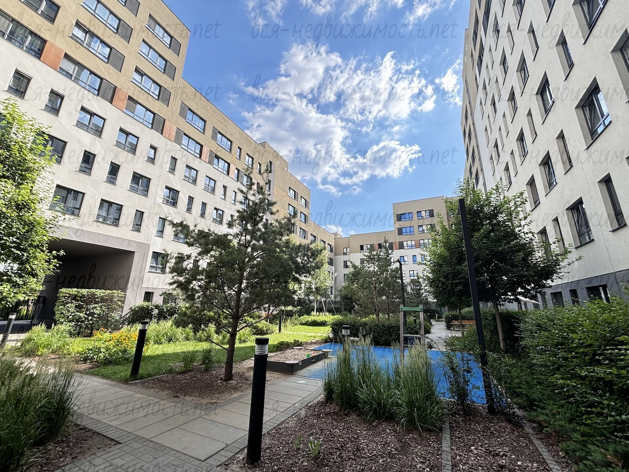 - в центре квартала расположен парк с прогулочными аллеями и фонтаном, детские игровые комплексы для разных возрастов, спортивный корт и уличные тренажёры