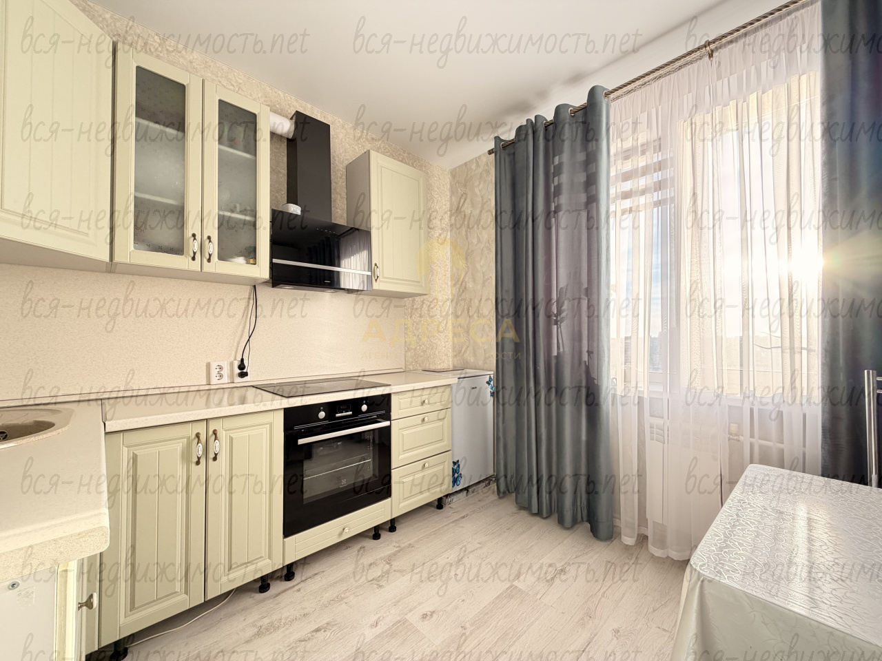 В квартире остается кухонный гарнитур, варочная поверхность.