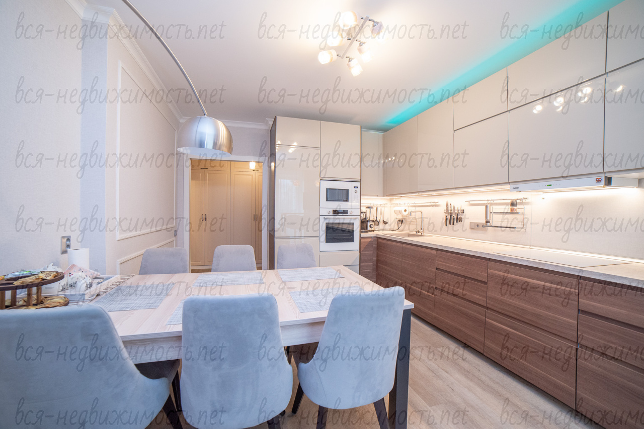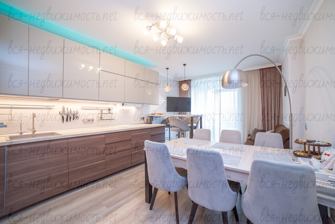 Продается дизайнерская квартира "под тапочки" в ЖК Бриз в Пионерском (Кировском) районе. Дом 2020 г. постройки. В квартиру заехали в 2022 году. Выполнен качественный ремонт из дорогостоящих материалов европейских фабрик. Квартира 99, 2 кв.м., с кухней-столовой 21 кв.м., тремя изолированными комнатами по 17.8, 18 и 19 кв.м. продается полностью с мебелью, техникой, интерьером. Все как на фото! Кухня ИКЕА с техникой BOSH и ELEKTROLUX. Встраиваемая мебель изготавливалась на заказ и высокопрочных материалов. Забираются только телевизоры, кожаная мебель, офисное кресло и несколько постеров. Много систем хранения в зоне кухни, коридоре, санузлах, комнатах. Установлен водонагреватель на 100 л.,