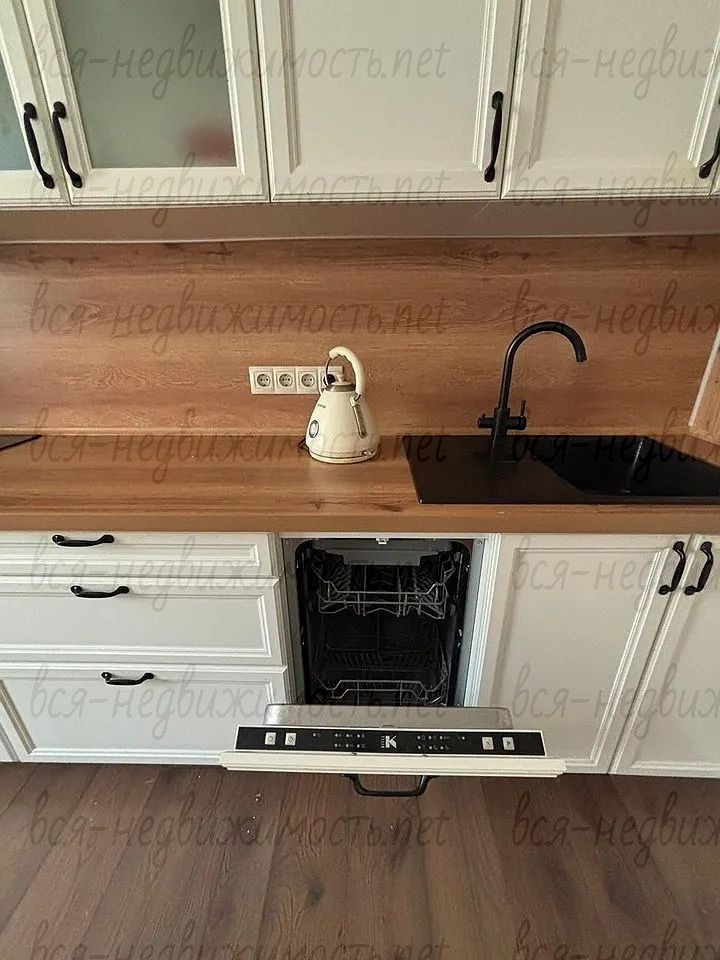 Новым хозяевам остаётся встроенная мебель (кухонный гарнитур, встроенные шкафы), встроенная техника (холодильник, посудомоечная машина, индукционная плита, встроенная микроволновка и духовой шкаф).