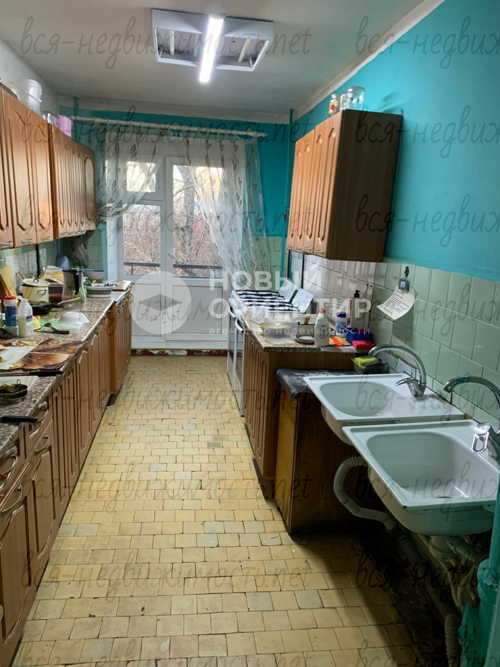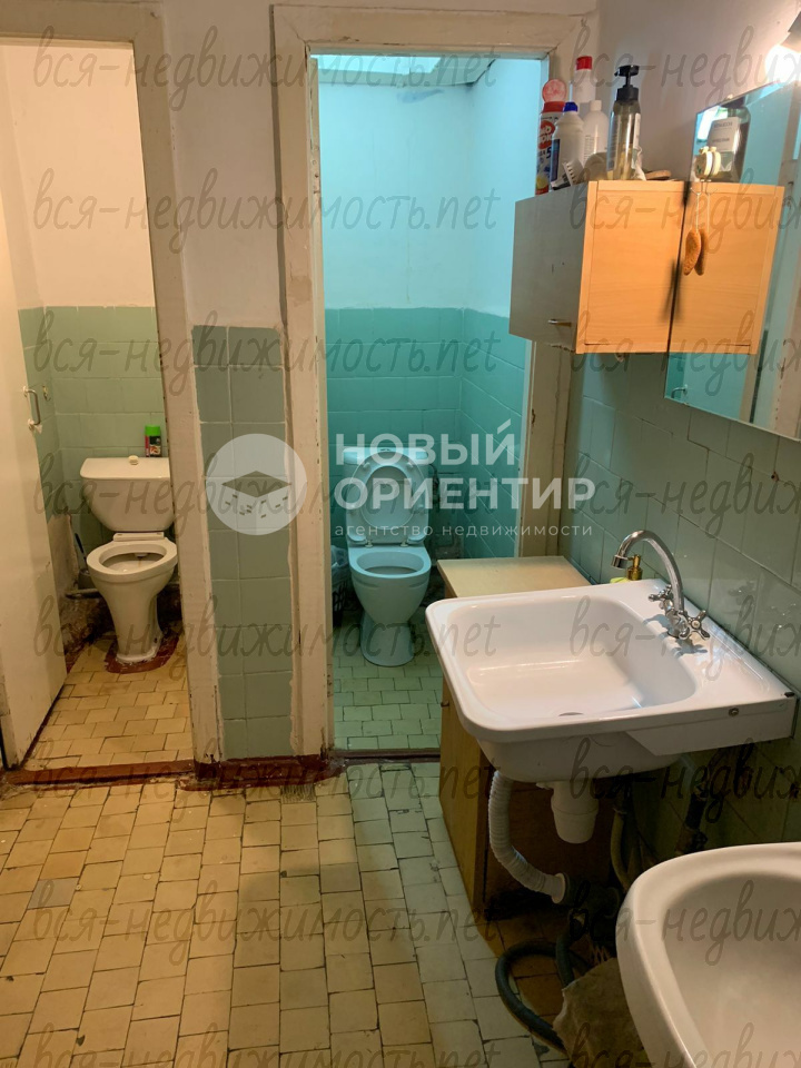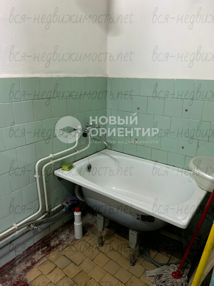 Комната расположена в общежитии секционного типа (по 5 комнат в каждой секции) с общей кухней. На кухне 2 раковины, 2 газовые плиты, к комнате относится свой напольный и навесной шкафы. Рядом с кухней есть небольшая ванная для хозяйственных нужд. В каждой секции свои 2 санузла, душевая, 2 раковины. Есть общий водонагреватель и личная стиральная машинка, которая остается покупателю в пользование. Ведутся дежурства между комнатами, на кухне и в санузлах всегда чисто и прибрано.