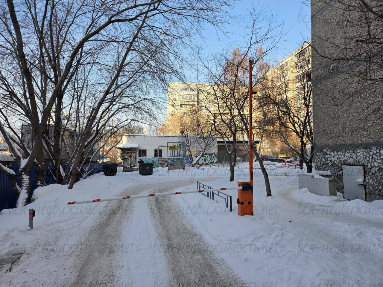 въезд через 2 шлагбаума со стороны ул. Бажова и ул. Энгельса.