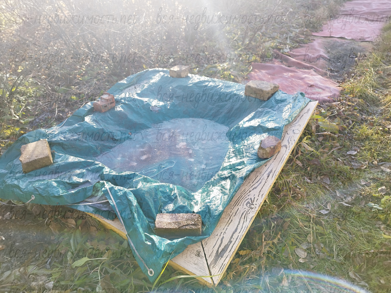 УЧАСТОК РАЗРАБОТАН. ИМЕЕТСЯ ЗОНА ОТДЫХА С ПЕСОЧНИЦЕЙ И ПЛОЩАДКА ДЛЯ БАССЕЙНА.