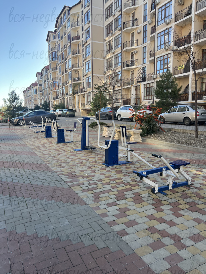 Закрытая территория комплекса, множество детских и спортивных площадок, скамеек, фонтан, сквер с беседками. В трех минутах ходьбы школа и детский сад. В пяти минутах ходьбы набережная и пляж.