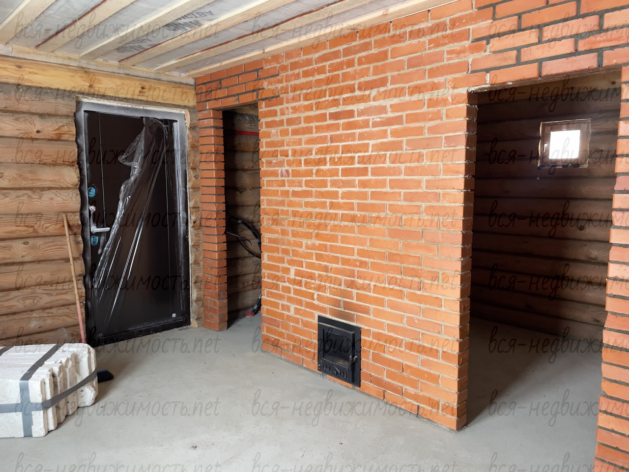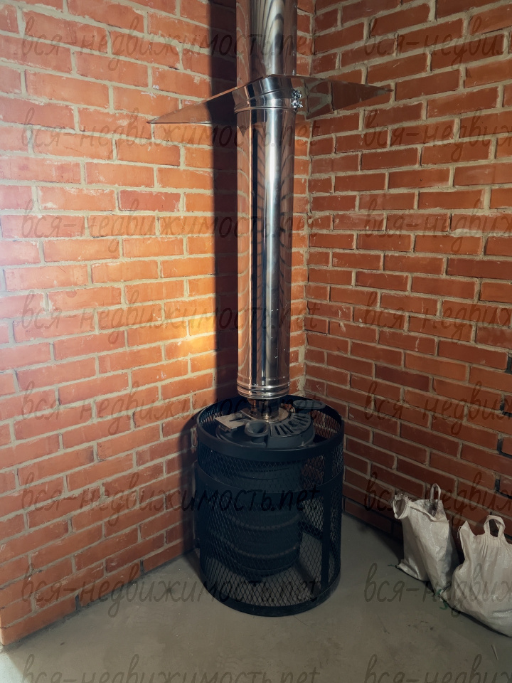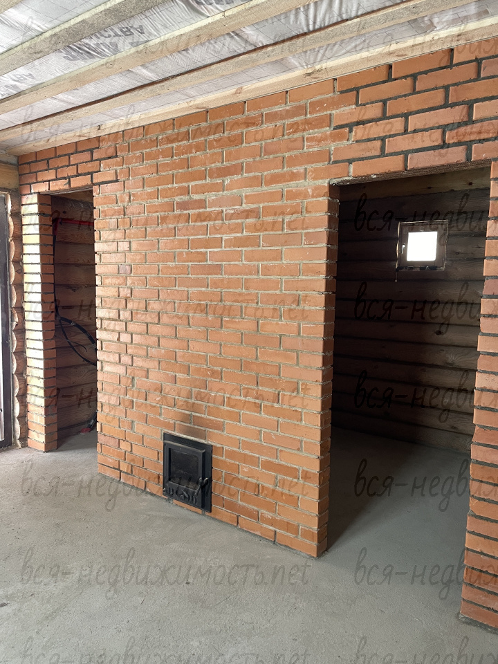 Хороший ленточный фундамент + плита, стены оцилиндрованый сруб, крыша металлочерепица ,утеплитель минвата, пароизоляция, перегородки из кирпича, тёплый пол, чугунная печь Технолит Искандер 18 ЗК в сетке, с чугунными шишками внутри