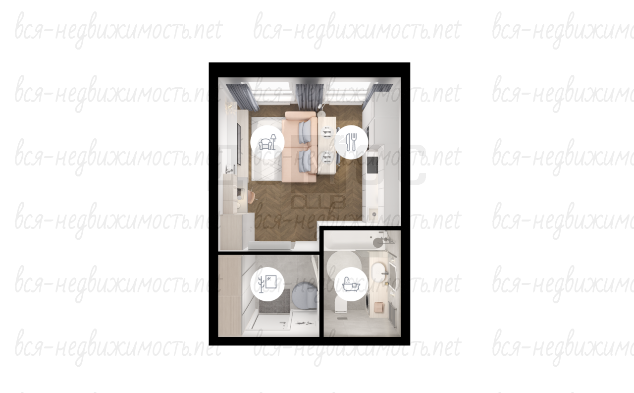 Уютная студия 25,3 м² в жилом комплексе «Утёс»