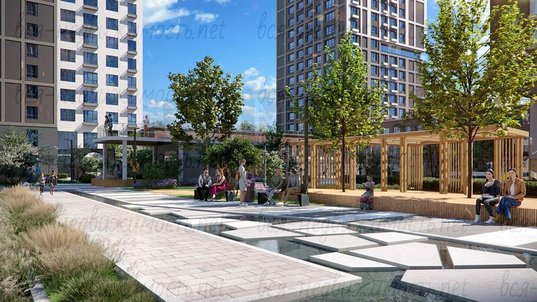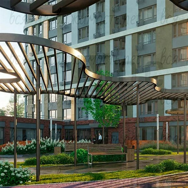 Двор комплекса – это пространство для открытий. Уникальные детские площадки, созданные по индивидуальному заказу не дадут скучать даже самым маленьким жителям, а беговые и велодорожки, вкупе с прогулочными зонами создадут впечатление настоящего приватного парка у взрослых, где за деревьями прячутся уютные скверы, зоны workout и барбекю, уютный пруд и настоящий ручей, а также многое другое.