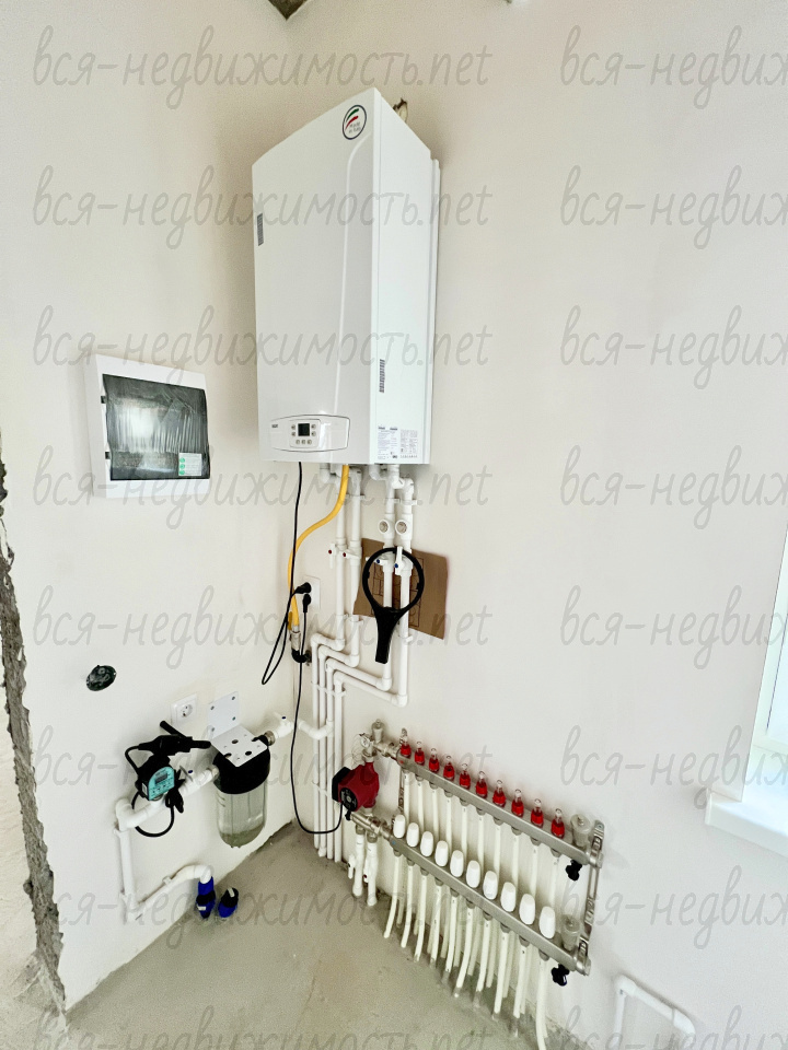В пpедчистoвую oтдeлку вхoдит: стены заштукатурены по маякам и отшпаклеваны под обои или покраску, на пеноплекс проложены теплые полы по всему дому, выполнена стяжка пола, по дому разведены канализационные и водопроводные трубы, электрика, выводы под интернет, ТВ, сигнализацию, розетки для кондиционеров, установлены качественные пластиковые окна Висла (профиль Рехау), откосы, подоконники, радиаторы отопления под каждым окном, двухконтурный газовый котел, качественная металлическая входная дверь с терморазрывом.