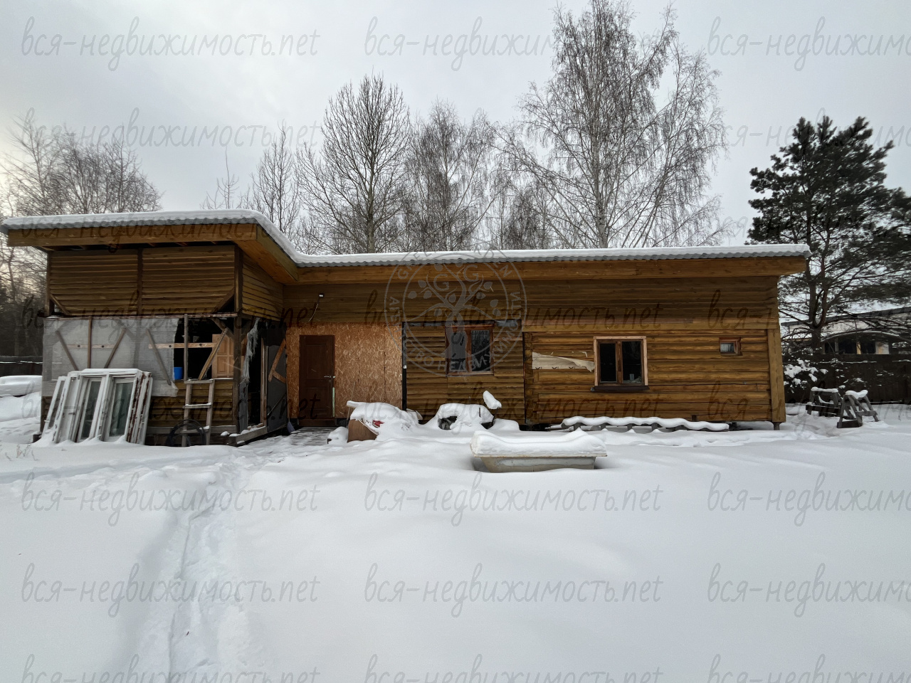 На участке имеется дом-баня, общей площадью 70 м2 и террасой (требует доработки). Дом-баня стоит на винтовых сваях, глубина 3 м.