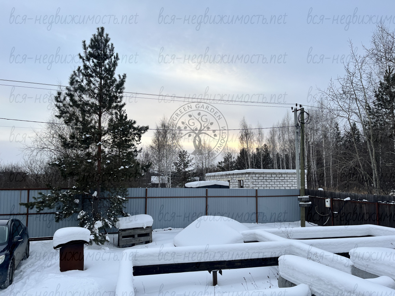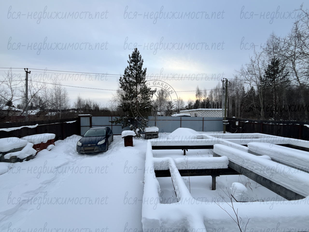 По периметру всего участка поставлен забор, сделаны ворота для заезда автомобилей.