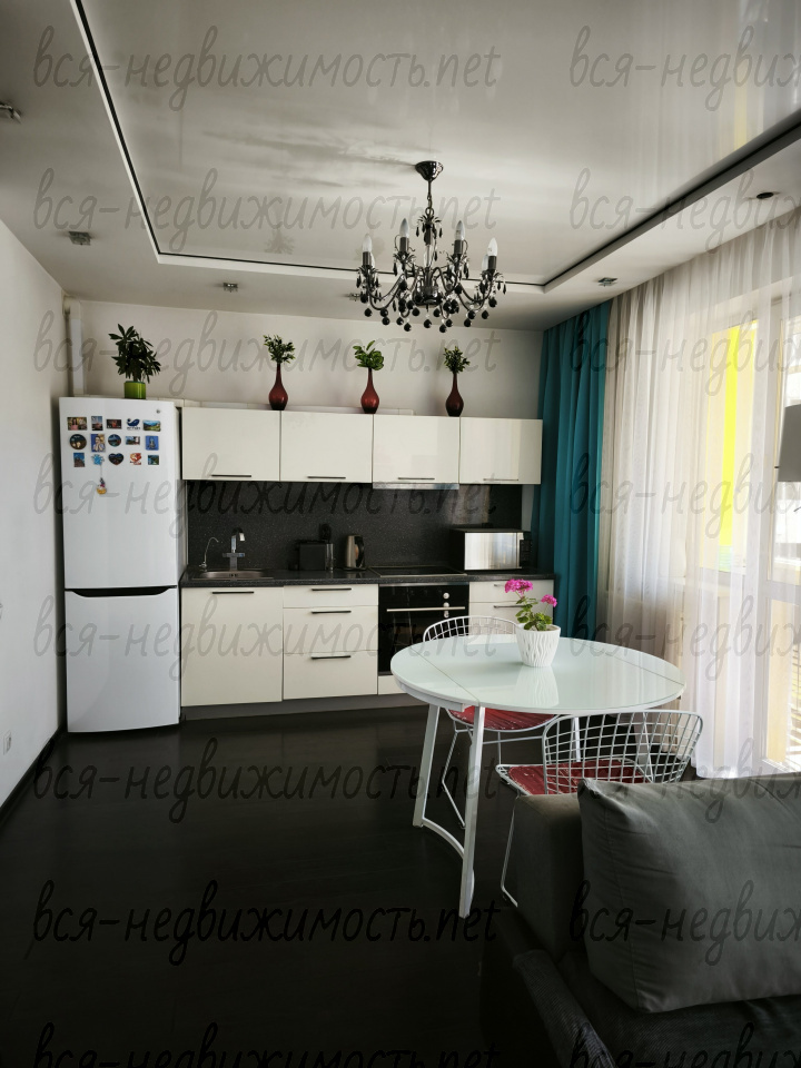 3.кухонный гарнитур оборудован мойкой, варочной поверхностью, духовым шкафом и вытяжкой, холодильник;