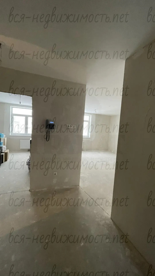 Стены оштукатурены и выравнены, на полу стяжка со слоем шумоизоляции.