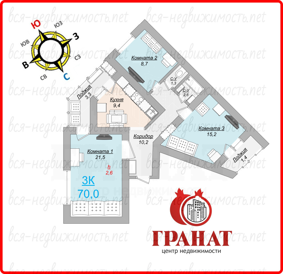 | Санузел: | Раздельный |