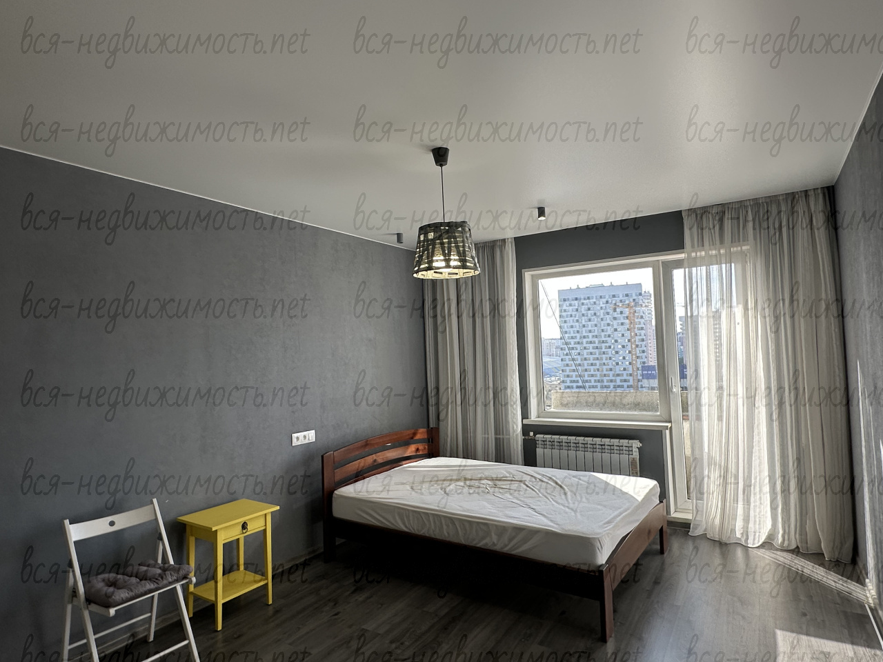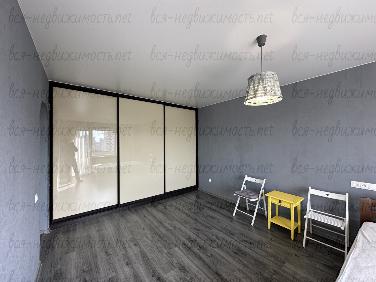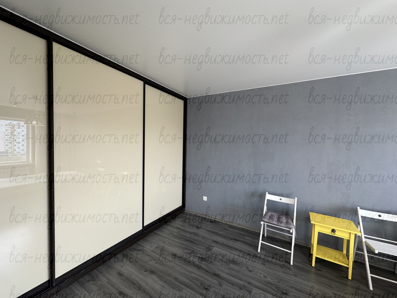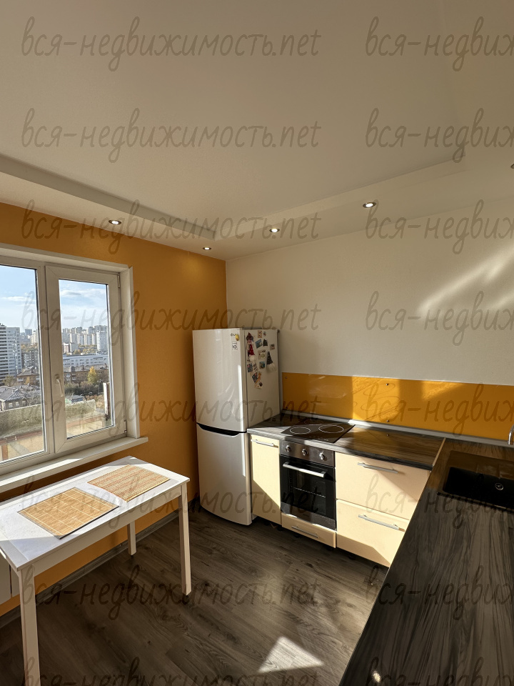 В квартире выполнен ремонт: пластиковые окна, ламинат, кухонный гарнитур со встроенной техникой: варочная поверхность, духовой шкаф, стиральная машина, холодильник. Комната оснащена встроенным вместительным шкафом-купе и кроватью.