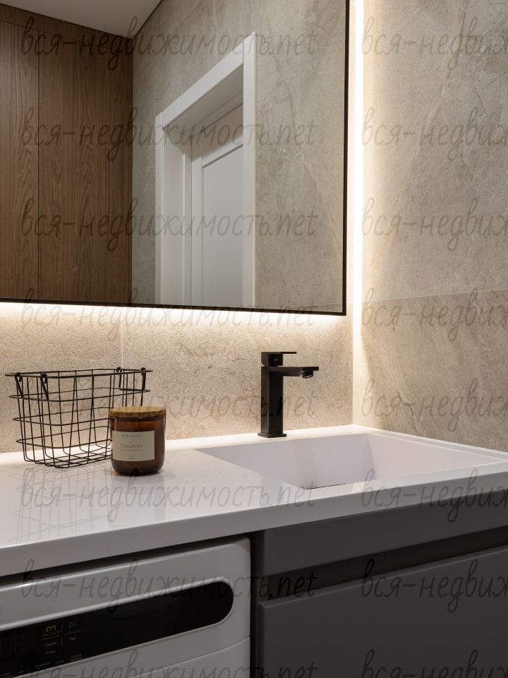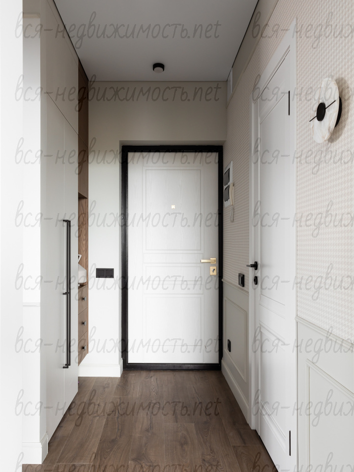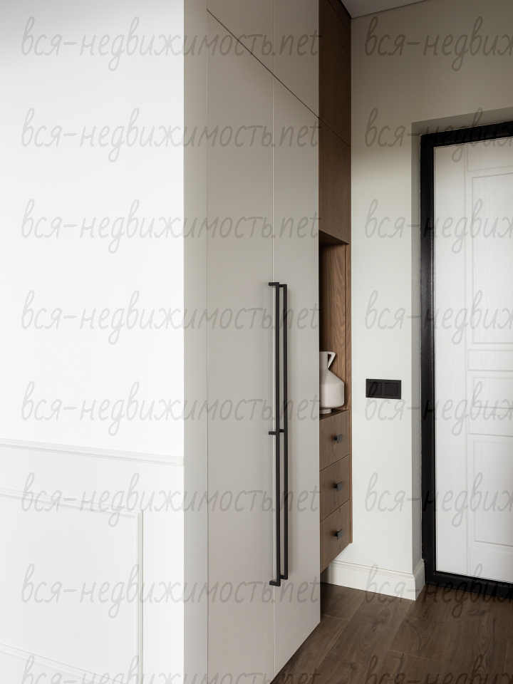 В квартире смонтированы встроенные системы хранения в прихожей, спальне, обоих санузлах.