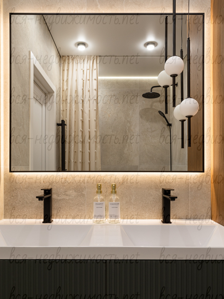 В квартире выполнен полный высококачественный дизайнерский ремонт "под тапочки", смонтирована вся мебель и бытовая техника. Дизайн и отделочные материалы подбирались с учетом уникального природного окружения дома, преобладают теплые природные оттенки.