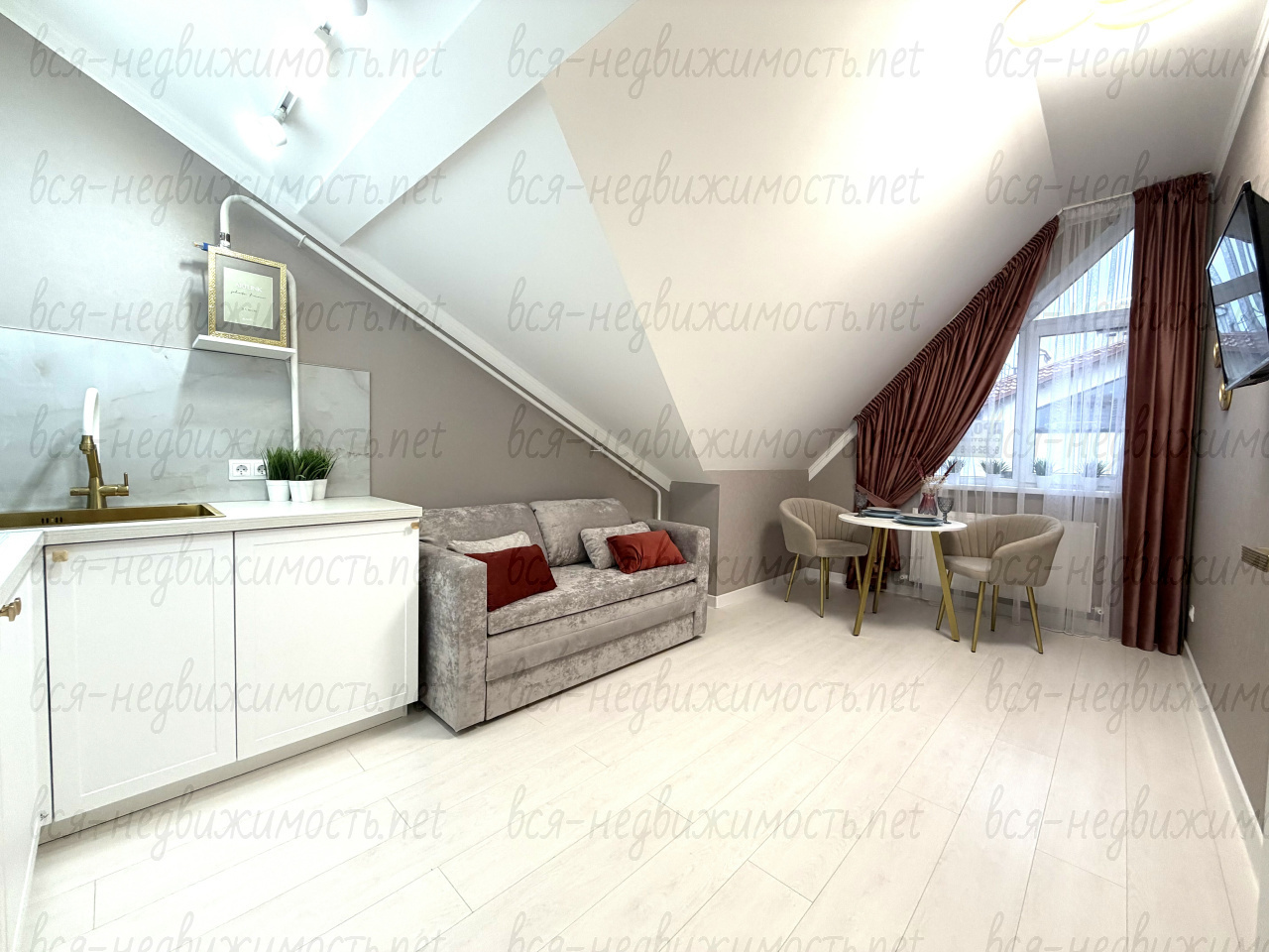 Удобная и продуманная планировка: кухня столовая с массой мест хранения и встроенной техникой, изолированная спальня, гостиная, санузел. Квартира имеет 6 спальных мест.