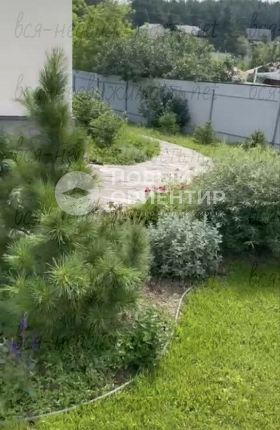 Участок огорожен, с плодовыми деревьями, декоративными растениями и зонами для отдыха. Расположение на возвышенности: лес и водоём рядом, пешая доступность до школы и детского сада.
