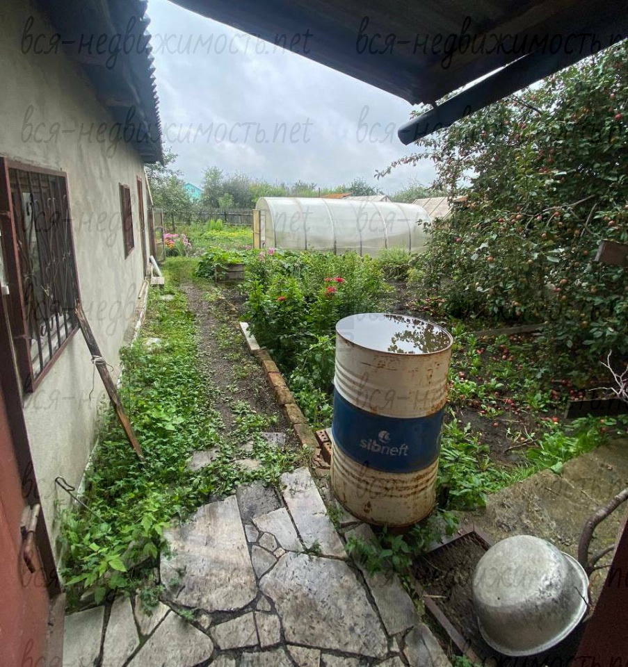 Участок: огород оборудованный для выращивания сезонных растений, теплицами, баками для полива, а также на участке есть круглогодичные фруктовые и ягодные деревья и кустарники.