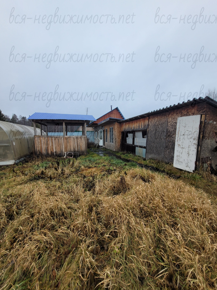 На участке расположены: 2 теплицы, сарай, дровенник.