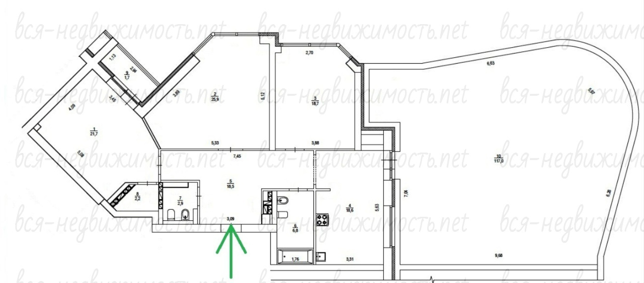 | Площадь кухни: | 19 м2 |