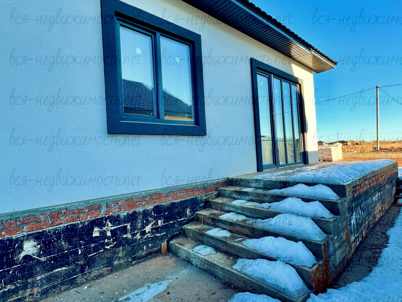 По всему дому армопояс, отмостки, дорожка до крыльца.